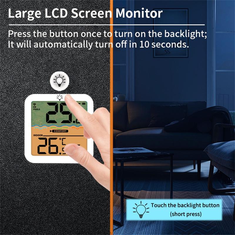 Das TS-PL07 ist eine hervorragende Wahl für alle, die eine bequemere Möglichkeit suchen, die Temperatur ihres Pools oder Whirlpools von drinnen aus zu überwachen. Das schwimmfähige, wasserdichte Design sorgt dafür, dass der Sender in direktem Kontakt mit dem Wasser bleibt, während der Empfänger für den Innenbereich die Temperaturmessung tagsüber schneller und einfacher macht.