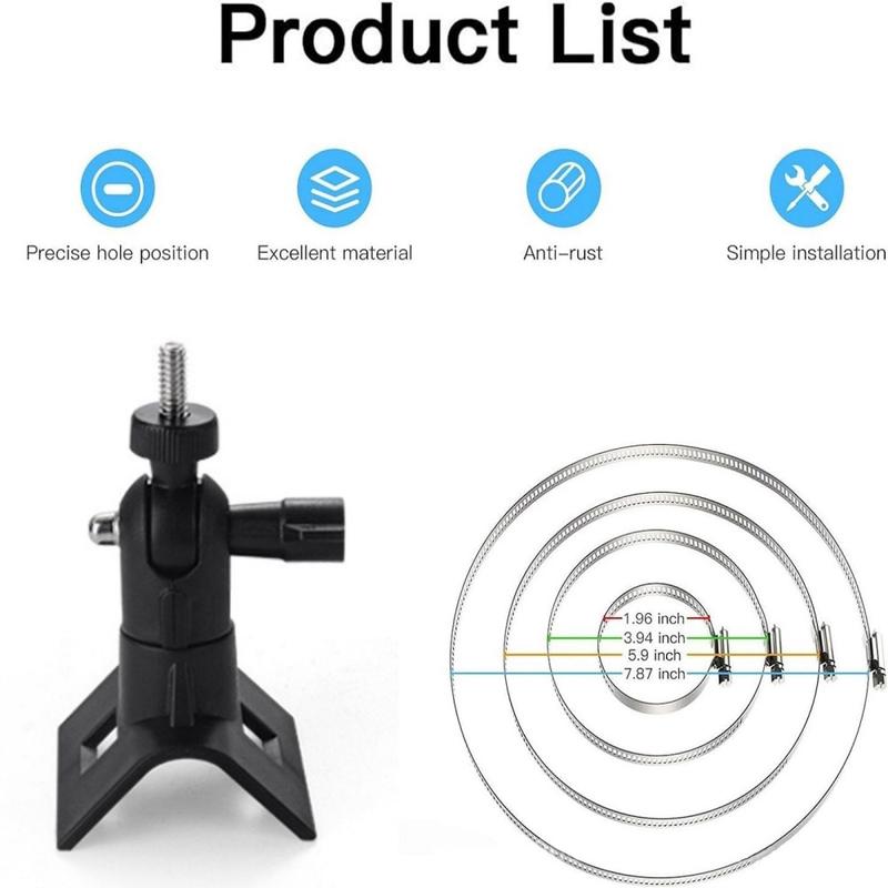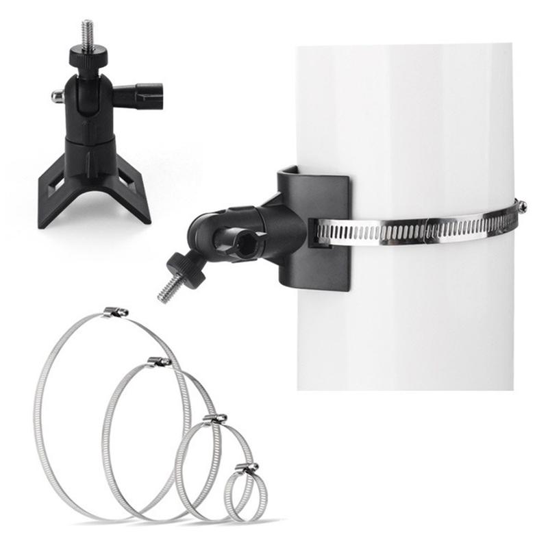 Die mit einer Edelstahlklemme ausgestattete Halterung bietet eine starke Haltekraft und langfristige Stabilität. Sie hält die Kamera sicher an Masten oder runden Konstruktionen, auch im Freien.