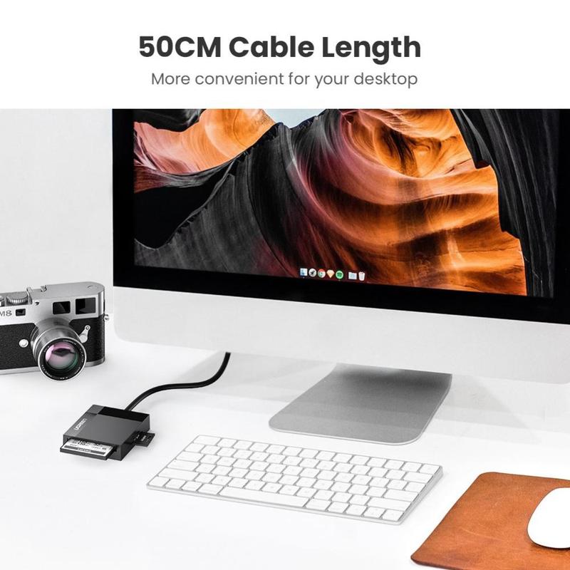 Übertragen Sie Fotos und Videos schnell und einfach mit dem UGREEN 4-in-1 USB 3.0-Speicherkartenlesegerät. Es wurde für Kreative und Alltagsnutzer entwickelt und unterstützt SD-, TF- (microSD-), CF- und MS-Karten in einem kompakten Adapter. Mit USB 3.0-Geschwindigkeiten von bis zu 5 Gbit/s und der Möglichkeit, bis zu vier Karten gleichzeitig zu lesen, sparen Sie Zeit beim Übertragen von Dateien von mehreren Kameras, Rekordern oder Speicherkarten. Ein strapazierfähiges, abgeschirmtes 50-cm-Kabel entlastet den USB-Anschluss Ihres Computers und sorgt für eine ordentliche und zuverlässige Installation.