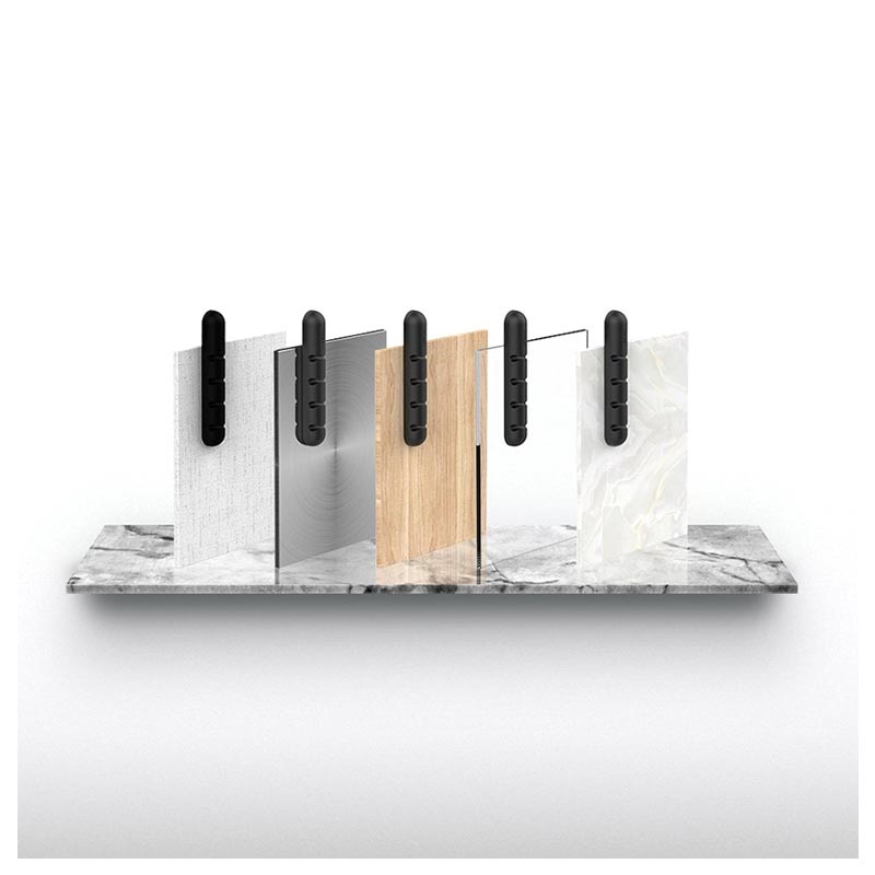 Dieses Ugreen-Kabelorganisator-Set enthält zwei Kabelhalterungen, und jeder Organizer kann bis zu vier Kabel gleichzeitig aufnehmen. Er besteht aus flexiblem Silikon und ist mit einer selbstklebenden Unterseite versehen, um ihn an jeder flachen Oberfläche zu befestigen.