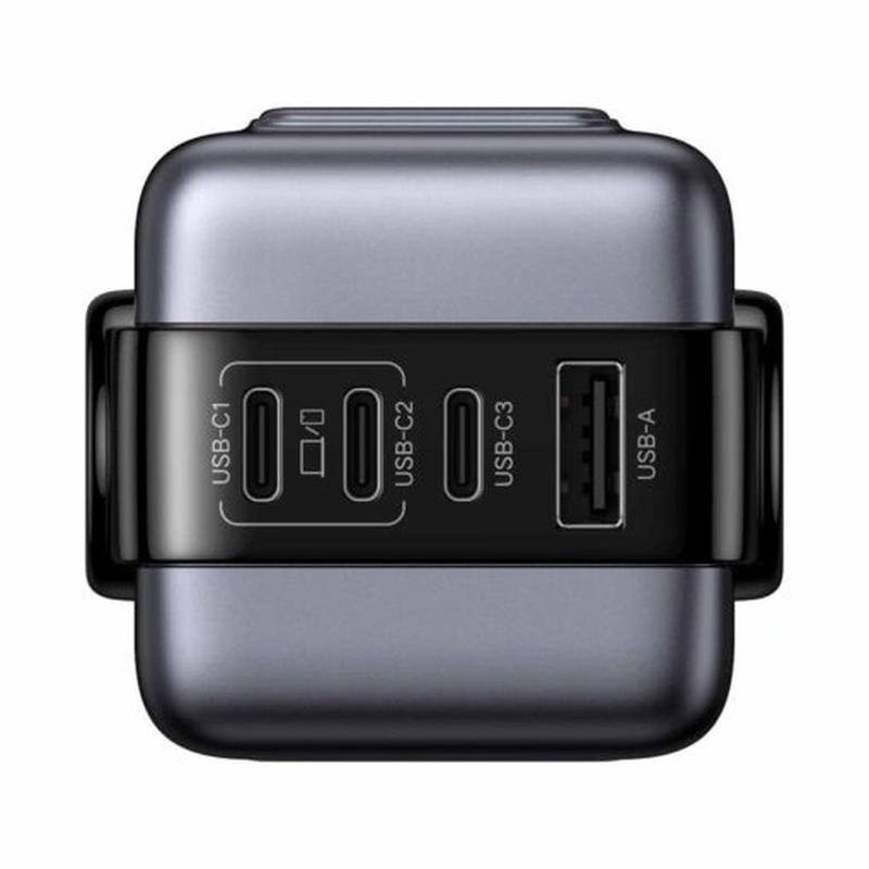 - Vier Ladeanschlüsse (3× USB-C + 1× USB-A) für die gleichzeitige Stromversorgung von bis zu vier Geräten