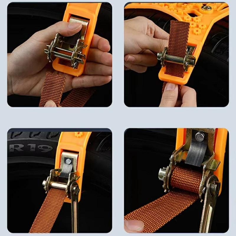 Dieses universelle Schneekettenset kombiniert Sicherheit, Haltbarkeit und Komfort für Fahrten im Winter oder im Gelände. Es ist ideal für Fahrer, die zuverlässige Traktion auf rutschigem Untergrund suchen, ohne sich mit sperrigen traditionellen Ketten herumschlagen zu müssen.