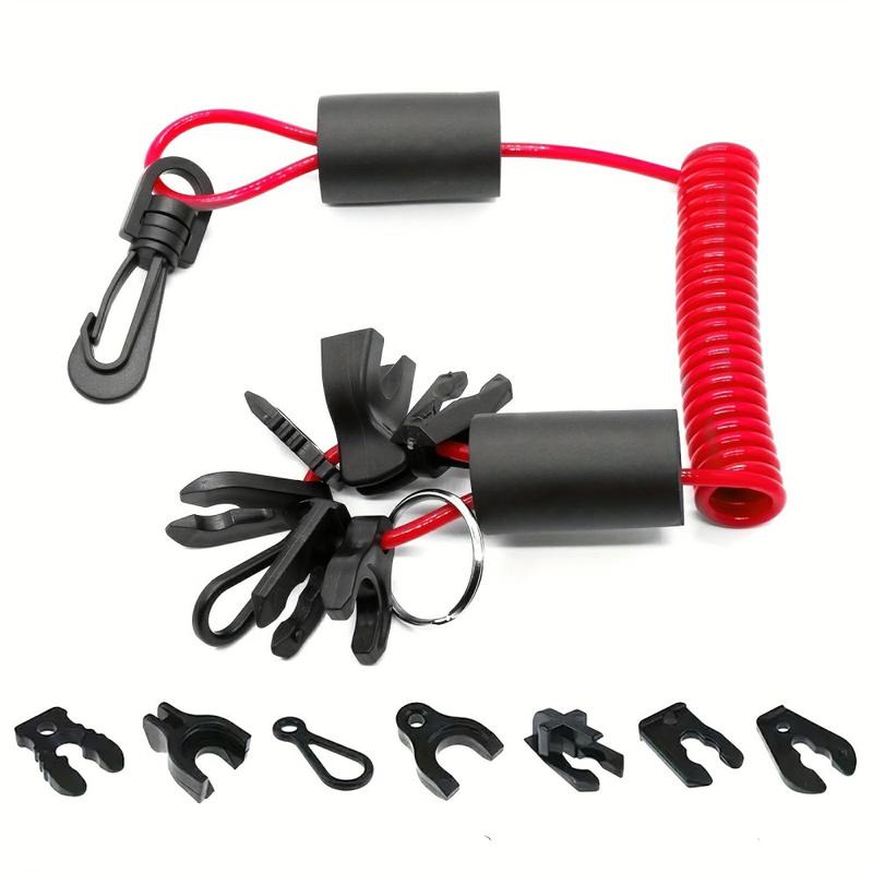 1.6m Außenbordmotor-Killschalter-Lanyard - TPU-Notfall-Sicherheitsleine mit drehbarem Haken, 7 Kill Switch-Tasten + 2 schwimmende Blasen