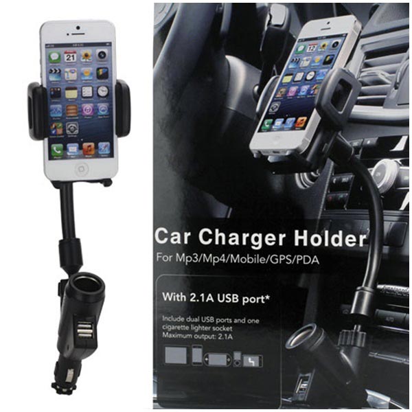 Universales Duales USB Autoladegerät / Halter Für die meisten Smartphones und mit zusätzlichem Zigarettenanzünder