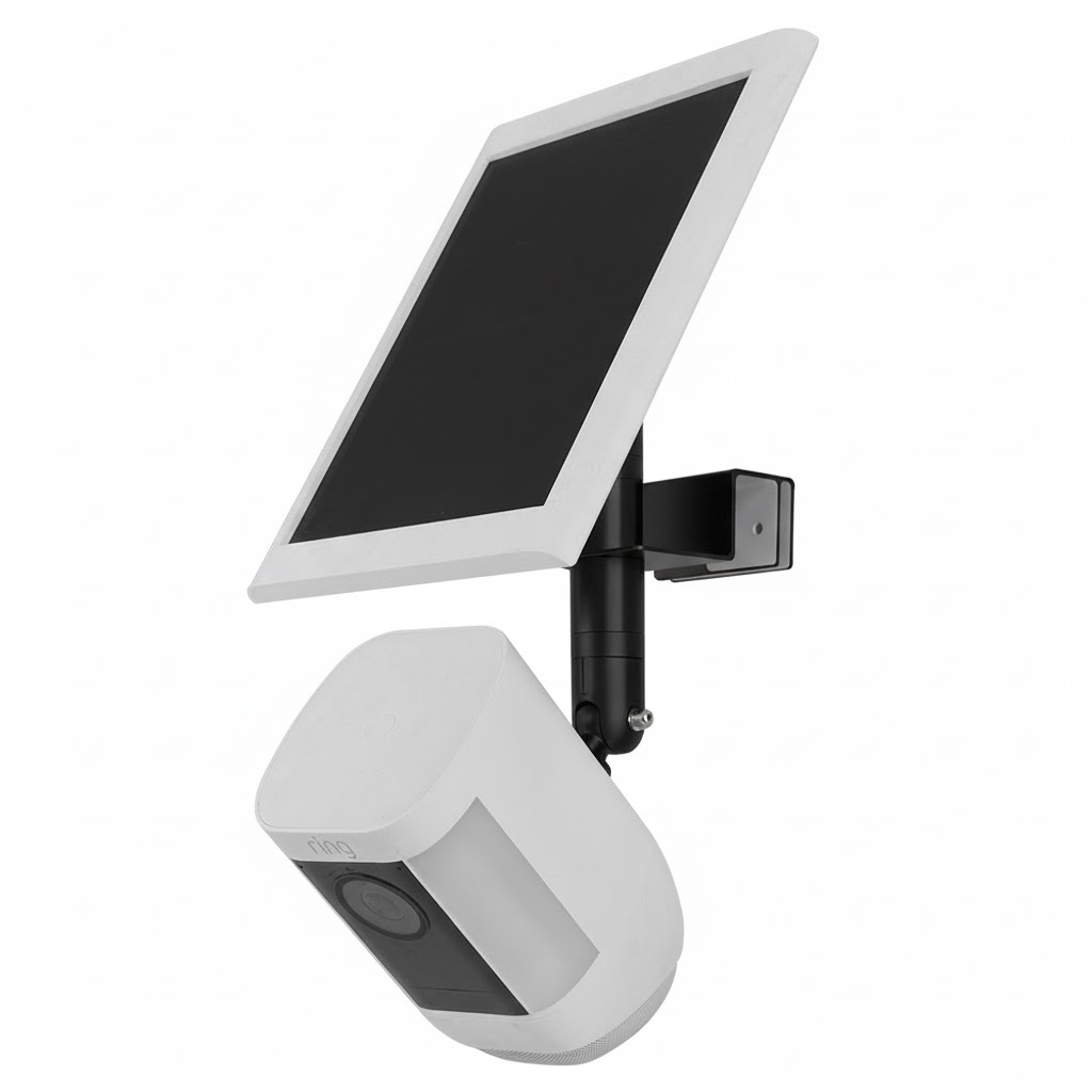 Ausgestattet mit austauschbaren Adaptersockeln ist die Halterung mit gängigen Geräten von Arlo, EufyCam und Ring kompatibel, einschließlich Kameraköpfen und passenden Solarpanels. Dies macht sie zu einer vielseitigen Wahl für gemischte oder aufgerüstete Sicherheitseinrichtungen.