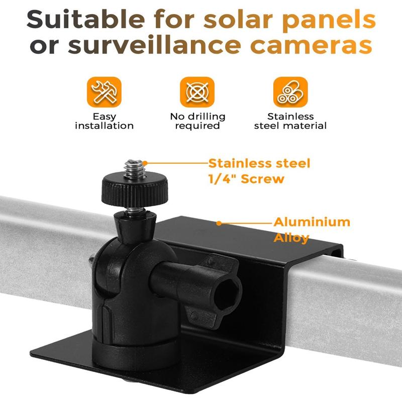 • Universelle Halterung für Sicherheitskameras an Geländern und Dachrinnen - 360° verstellbare Aluminium-Schwenk-Neige-Halterung mit 1/4"-Schraube