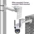 Diese Halterung unterstützt die Wand-, Eck- und Mastmontage und eignet sich somit für verschiedene Installationsszenarien. Sie lässt sich problemlos an die Überwachungsbedürfnisse im privaten, gewerblichen und industriellen Bereich anpassen, ohne dass zusätzliches Montagezubehör erforderlich ist.