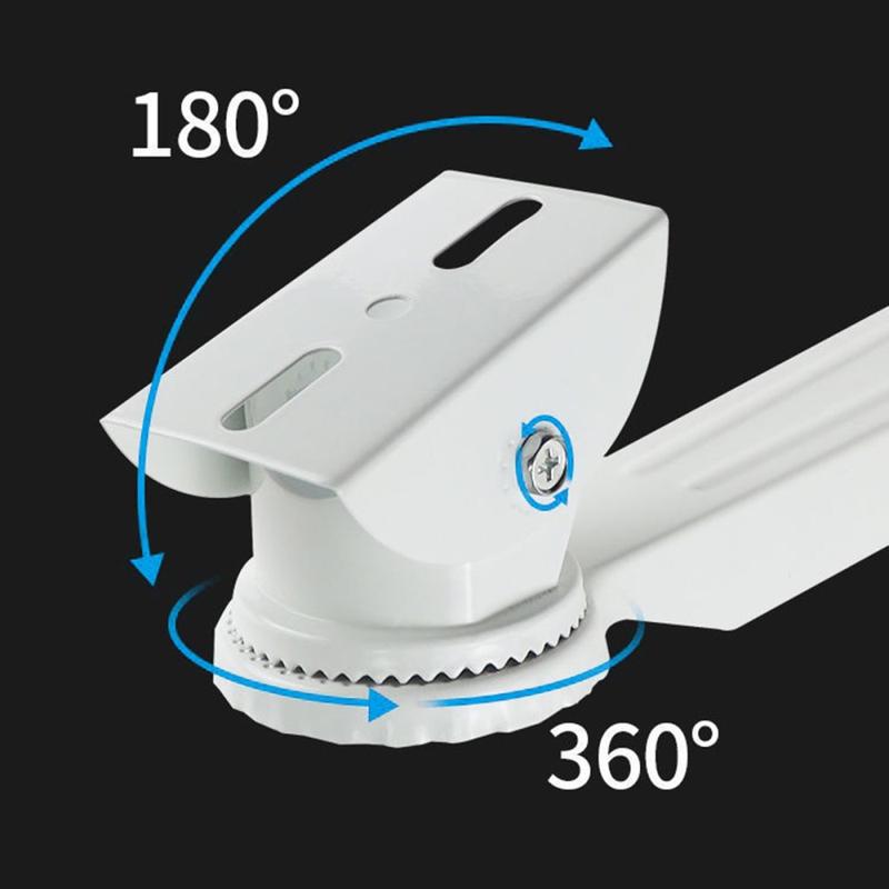 Die Halterung lässt sich um 360 Grad drehen und ermöglicht so eine präzise Einstellung des Kamerawinkels. Diese Flexibilität trägt dazu bei, tote Winkel zu reduzieren, und stellt sicher, dass sich der überwachte Bereich immer im Sichtfeld der Kamera befindet.