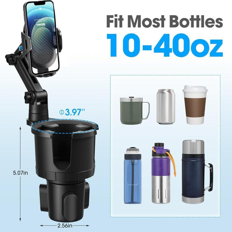 • 2-in-1-Handyhalterung für die Getränkehalterung - um 360° drehbare, verstellbare Handyhalterung mit Schnellverschluss, passend für 4-7 Zoll