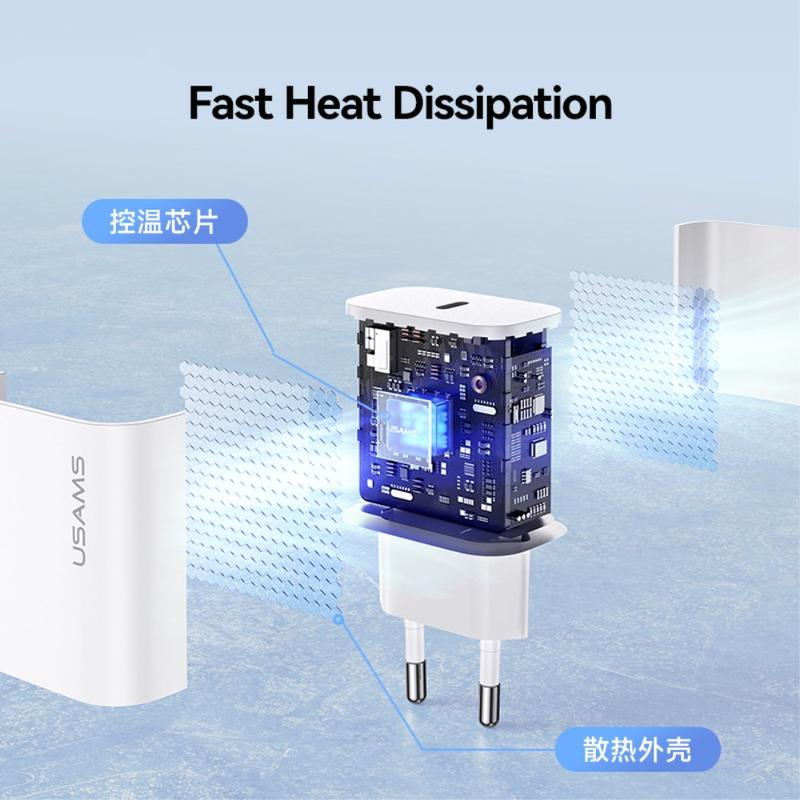Upgraden Sie auf das USAMS CC226 20W PD-Schnellladegerät - kompakt, leistungsstark und für sicheres Hochgeschwindigkeitsladen konzipiert!