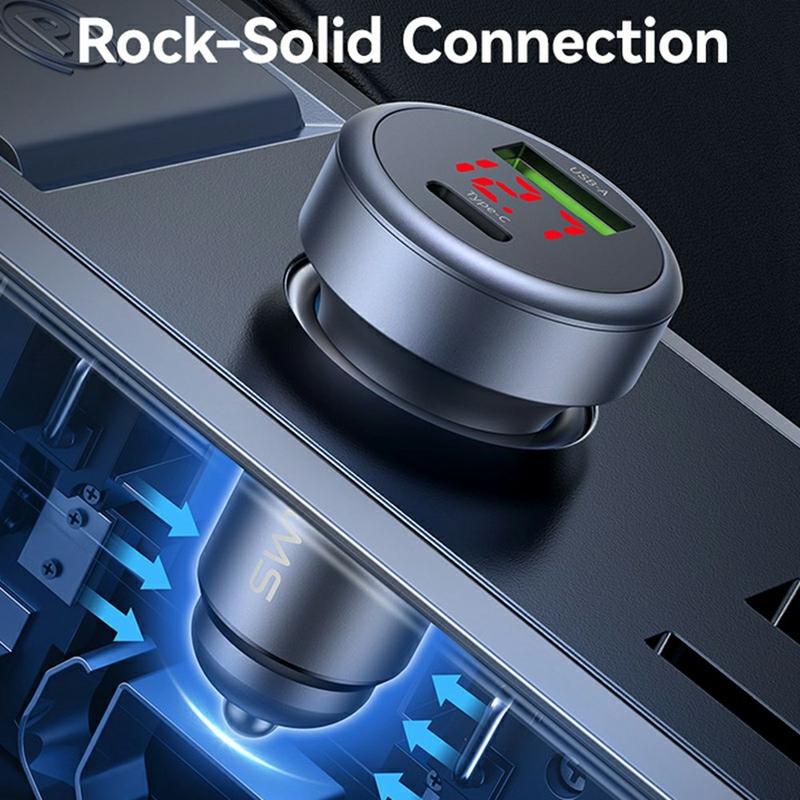 Mit USB-A- und Typ-C-Ausgängen vermeidet das Ladegerät Wartezeiten, indem es zwei Geräte gleichzeitig mit Strom versorgt. Dies ist ideal für gemeinsame Autofahrten, Navigation plus Aufladen oder die Nutzung durch Fahrer und Beifahrer.