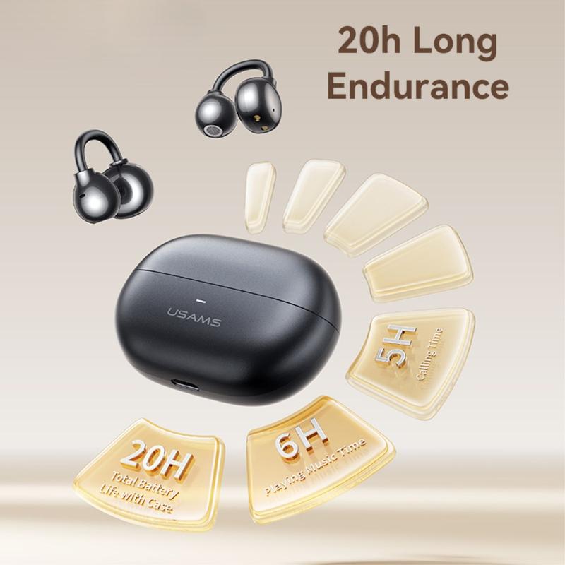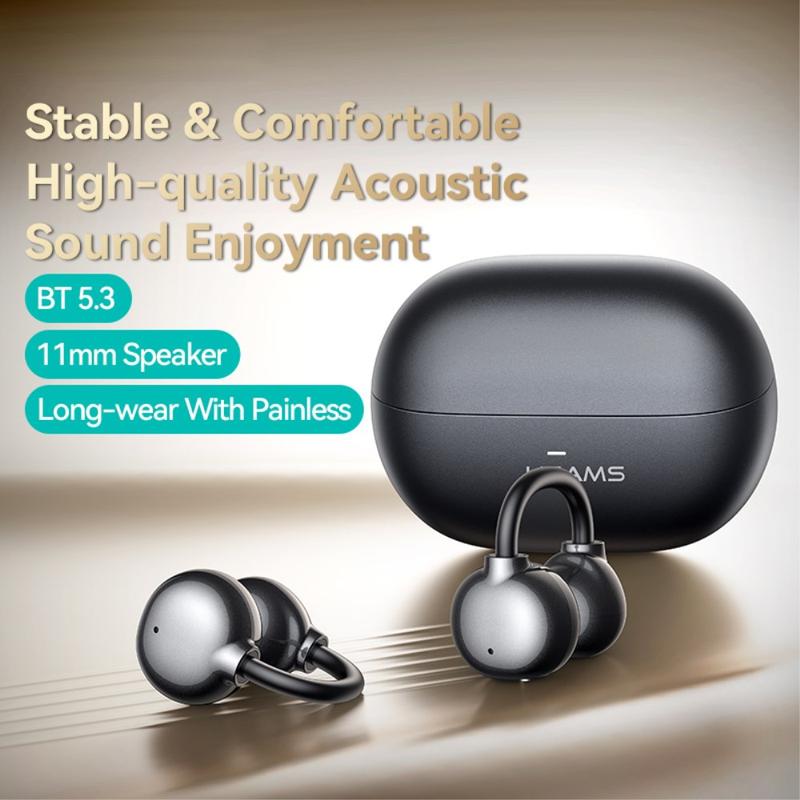 • Usams Echo R02 Clip-On Wireless-Kopfhörer - 25 Stunden Gesamtspielzeit, Bluetooth 5.3 Komfort für unterwegs