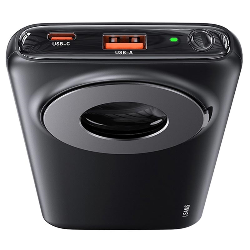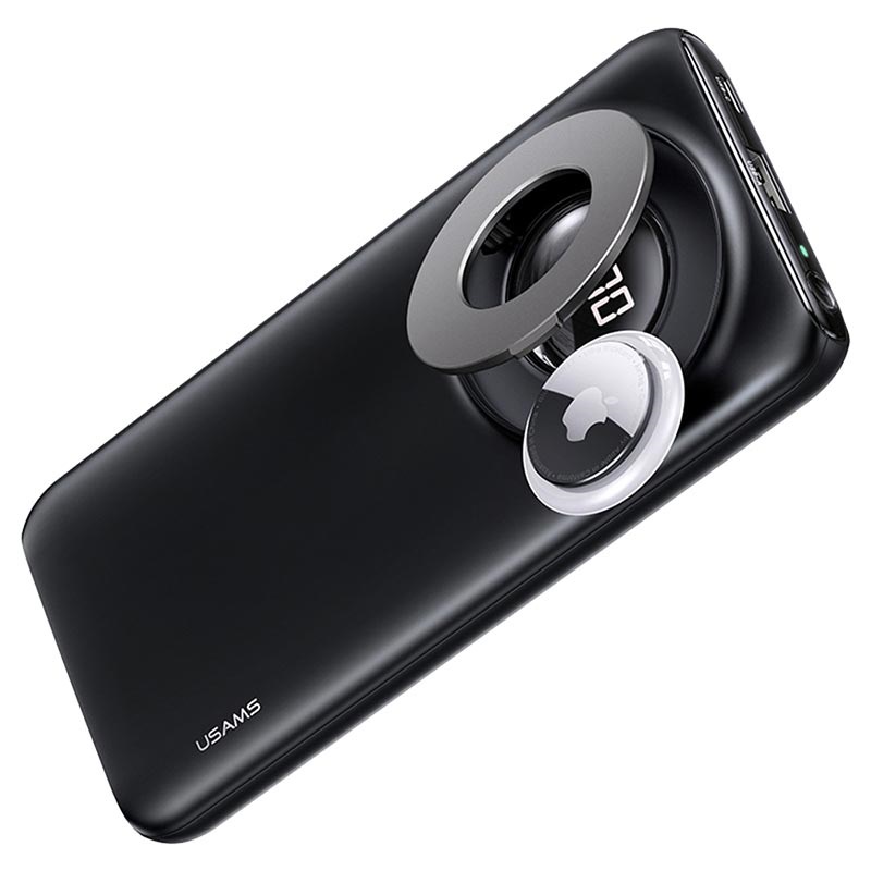 Laden Sie bis zu drei Geräte gleichzeitig mit einer maximalen Ausgangsleistung von 22,5 W über Standard-USB, USB-C-Anschluss und Qi-Ladegerät auf. Legen Sie den AirTag in das innere Ringfach auf der Rückseite, verwenden Sie den Ring als Ständer und überprüfen Sie die verbleibende Leistung auf dem digitalen Display. Usams US-CD171PB62 magnetische kabellose Powerbank ist kompatibel mit MagSafe und unterstützt Schnellladeprotokolle wie Power Delivery 20W, Quick Charge 3.0, etc.