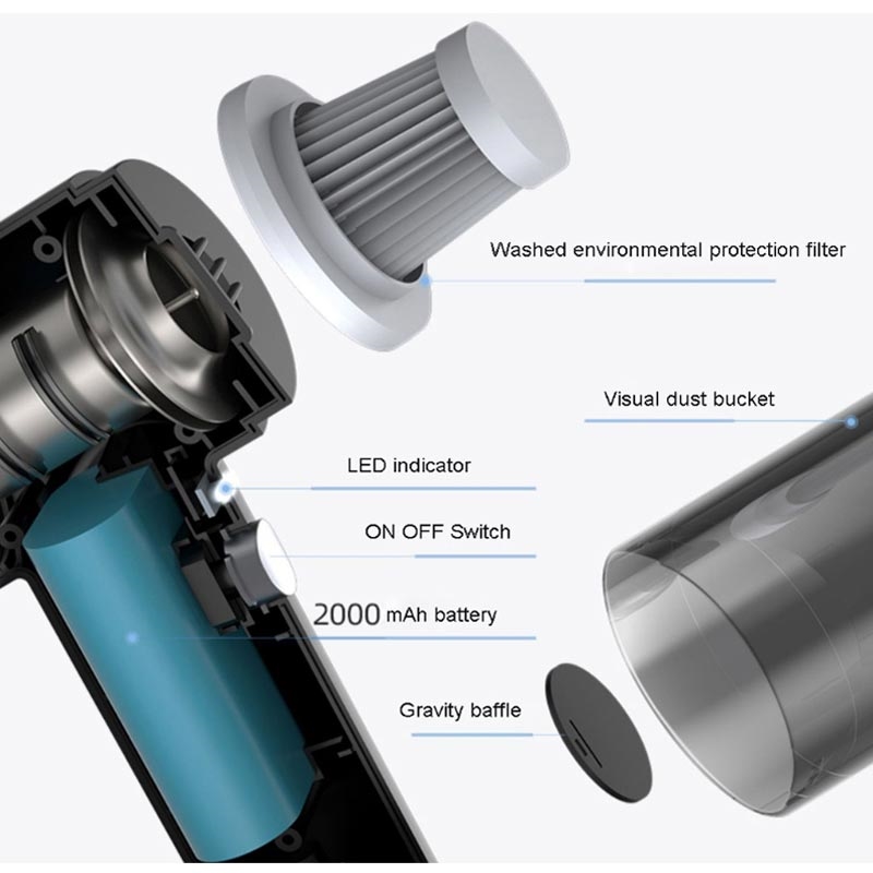 Der kabellose 6000-Pa-Autostaubsauger ist ein leistungsstarkes, tragbares Reinigungsgerät, mit dem Sie Ihr Auto, Ihr Zuhause und Ihr Büro makellos reinigen können. Mit einer 120-W-Hochleistungssaugleistung und einem Saugdruck von 6000 Pa entfernt er effektiv Staub, Krümel, Tierhaare, Ruß und sogar kleine Wasserflecken. Die mitgelieferten multifunktionalen Bürstenköpfe erreichen auch enge Zwischenräume, Autositze, Fußmatten und Gepäckfächer und sorgen für eine gründliche Reinigung. Der leichte und kabellose Staubsauger ist mit einem 2000-mAh-Akku ausgestattet und kann mit einer vollen Ladung bis zu 30 Minuten lang ununterbrochen verwendet werden. Der große Staubbehälter mit 0,5 Litern Fassungsvermögen sorgt dafür, dass er seltener geleert werden muss, und die USB-Aufladung ermöglicht eine bequeme Stromversorgung über Adapter, Powerbanks oder Autoladegeräte.
