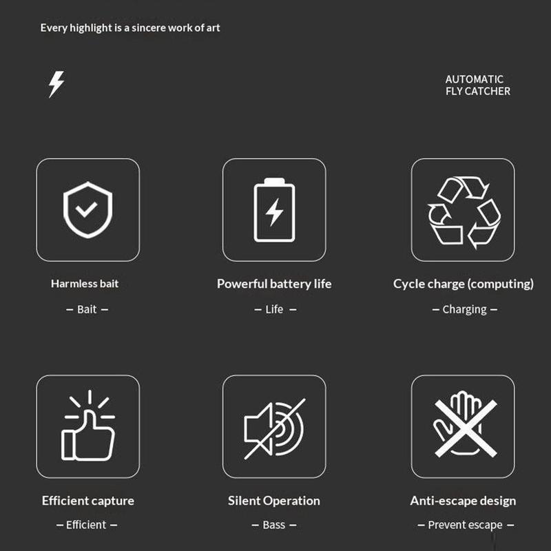 USB-aufladbare, automatisch rotierende Fliegenfalle für den Innenbereich - Schwarz