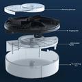 Der automatische Rotationsmechanismus arbeitet geräuscharm und eignet sich daher für den Einsatz bei Tag und Nacht, ohne Störungen zu verursachen. Dank der breiten Fangfläche von 16 cm und einer Reichweite von bis zu 120 m ist er auch für größere Innenräume effektiv, während das ausbruchsichere Design dafür sorgt, dass gefangene Insekten im Gerät bleiben. Die abnehmbare Konstruktion erleichtert zudem die Wartung und ermöglicht eine regelmäßige Reinigung für einen hygienischeren Langzeitgebrauch.