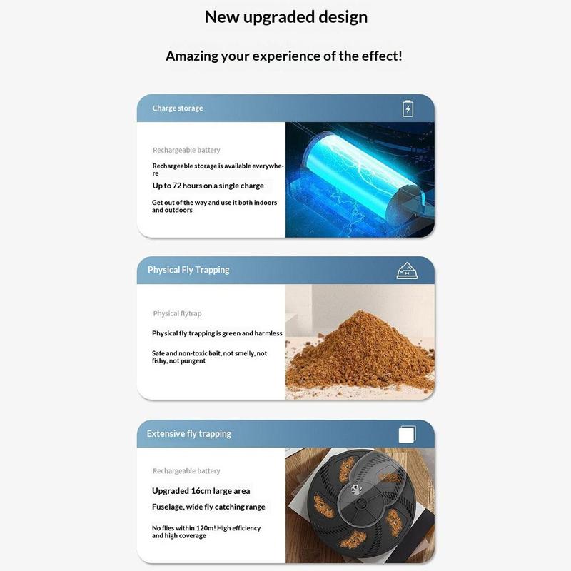 • USB-aufladbare, automatisch rotierende Fliegenfalle für den Innenbereich