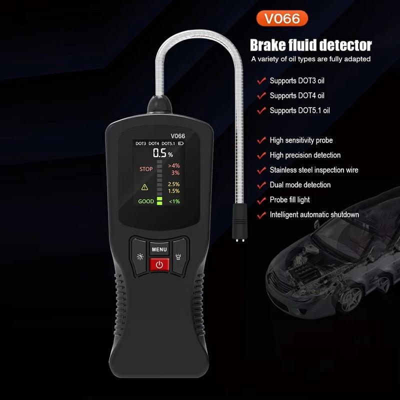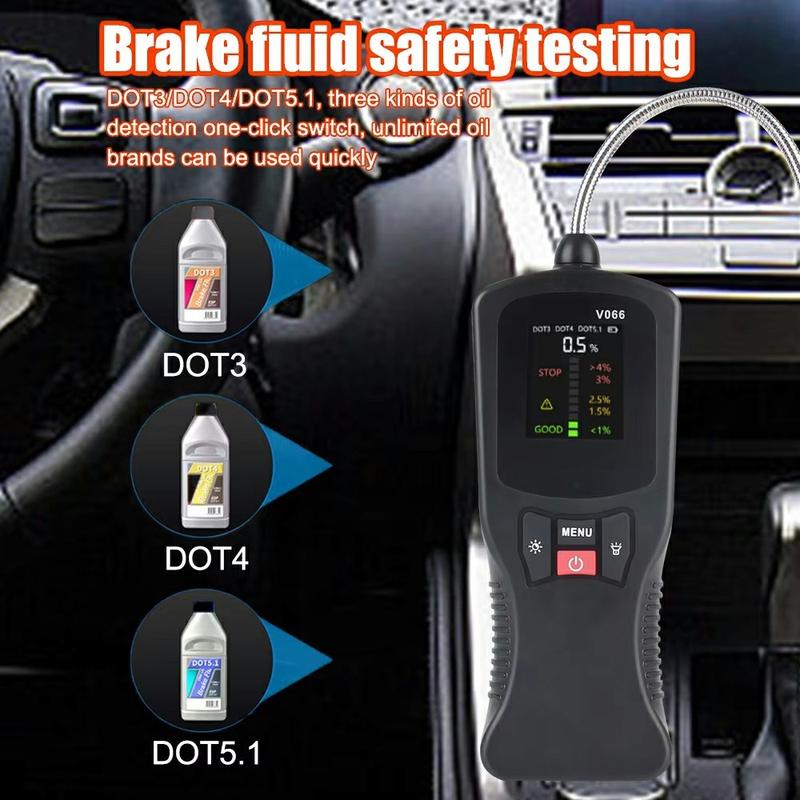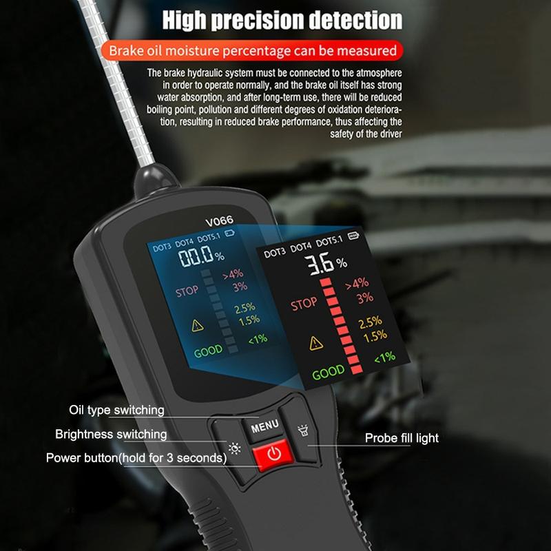 V066 Bremsflüssigkeitstester für die Autodiagnose - DOT3 DOT4 DOT5.1 Wassergehalt-Prüfgerät mit Farbdisplay und hochempfindlicher Sonde