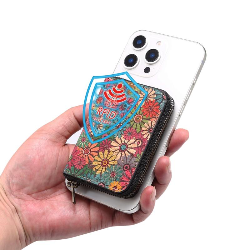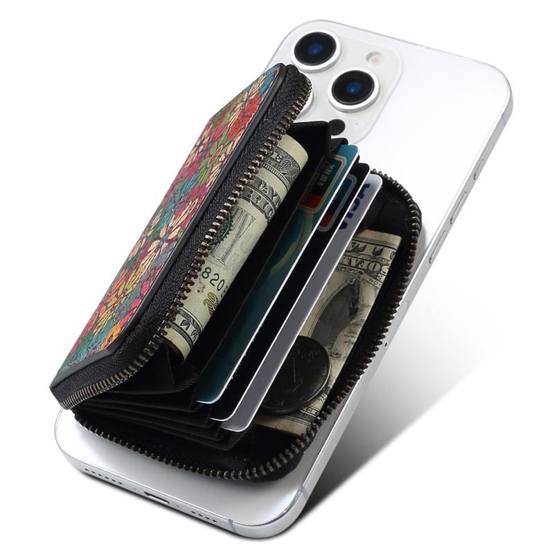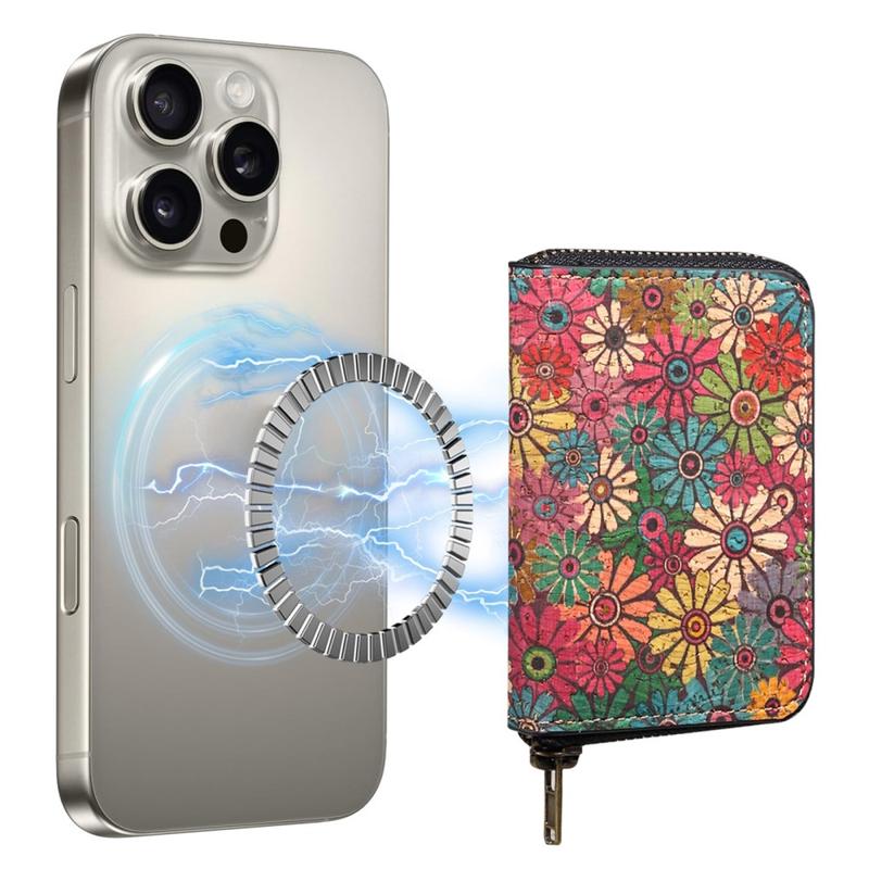 • V16 Magnetisches Kartenetui mit Reißverschluss - Floral gemusterte Brieftasche, MagSafe-kompatibel