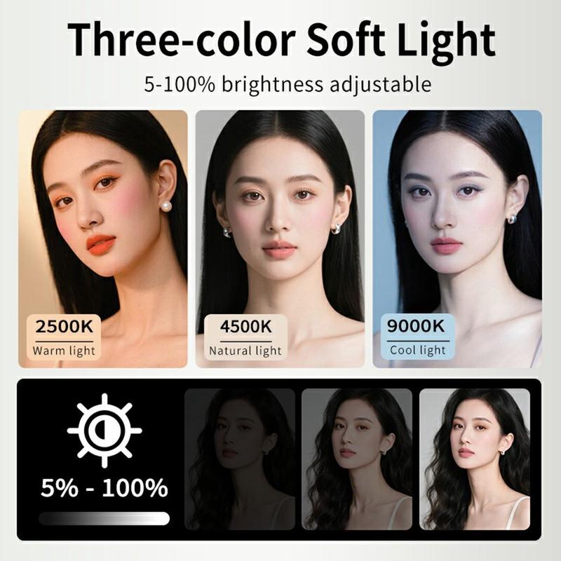 Stellen Sie das Licht von 2500K warmen Tönen bis 9000K kühlem Tageslicht ein, um es an jede Aufnahmeumgebung anzupassen. Perfekt für Live-Streaming, Produktfotografie, Porträts und Telefonkonferenzen.