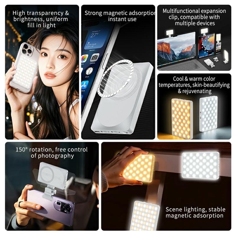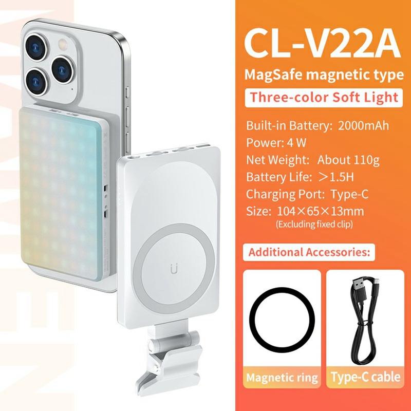 Das tragbare magnetische LED-Aufhelllicht V22A bietet eine leistungsstarke, präzise Beleuchtung in einem kompakten Design, das ideal für Smartphones, Kameras und Streaming-Setups ist. Mit Typ-C-Ladung, einstellbarer Helligkeit und einem breiten Farbtemperaturbereich sorgt es für hervorragende Ergebnisse, egal ob Sie drinnen, draußen oder unterwegs filmen.