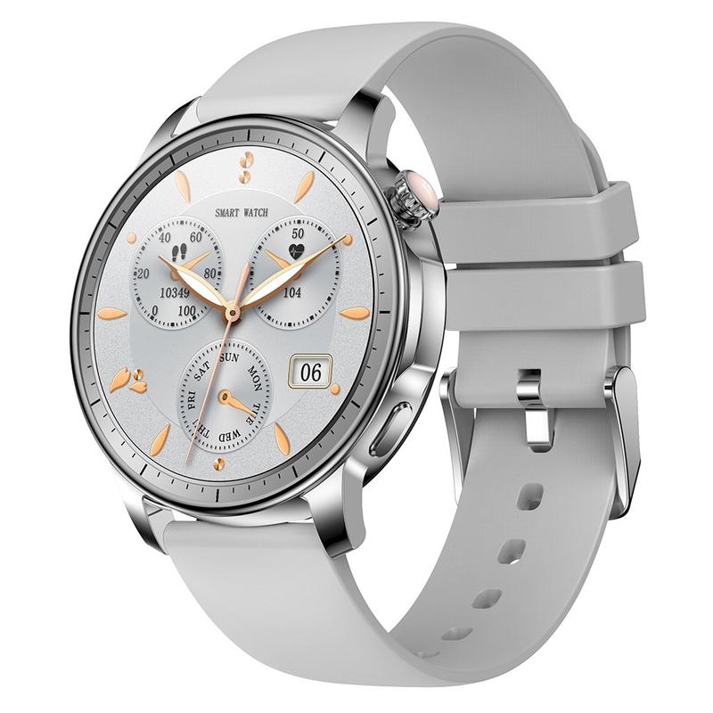 V65 1,32-Zoll-AMOLED-Touchscreen-Smartwatch Herzfrequenzmesser Frauen Sport-Armband, Silikonband - Silber