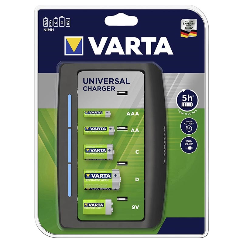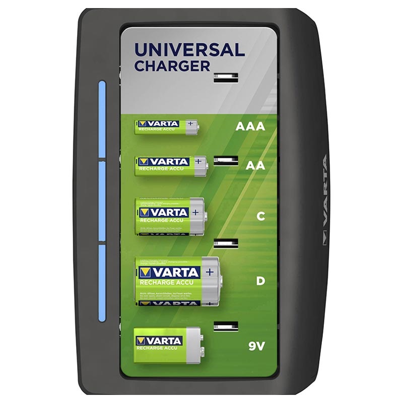 • Varta Easy Universal Ladegerät für AA, AAA, C, D, 9V Aufladbare Batterien