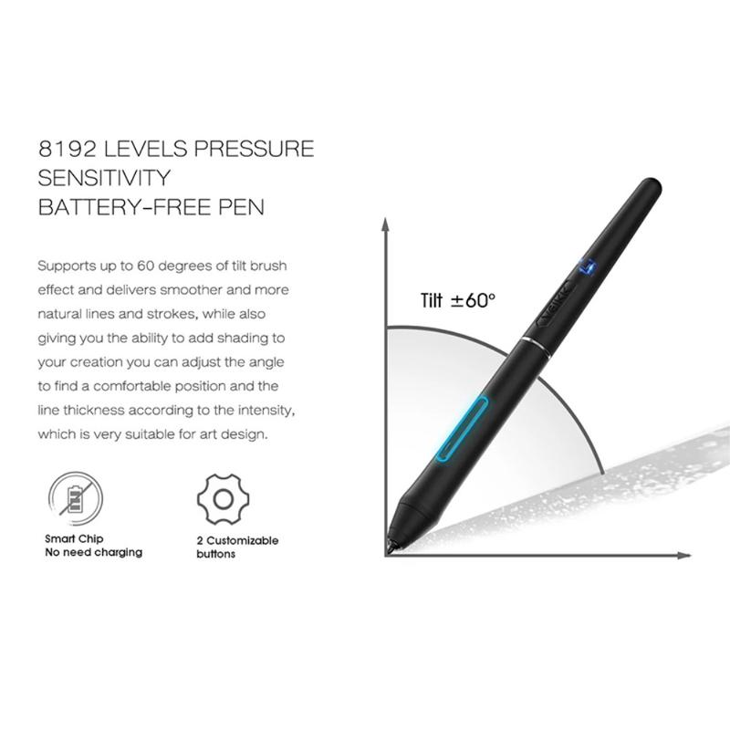 Natürlich und präzise: Dieses Zeichentablett verfügt über einen drucksensitiven Stift der Stufe 8192, der nahtlose Übergänge von dünnen zu dicken Linien unter Ihrer präzisen Kontrolle ermöglicht. Die ±60° Neigungsfunktion ermöglicht es dem digitalen Stift, so natürlich zu zeichnen wie ein echter Bleistift. Er eignet sich perfekt zum Skizzieren, Ausmalen und Erstellen stilisierter Kunstwerke. Der batterielose Stift muss nicht aufgeladen oder ausgetauscht werden, was eine unterbrechungsfreie, reibungslose Erstellung gewährleistet.