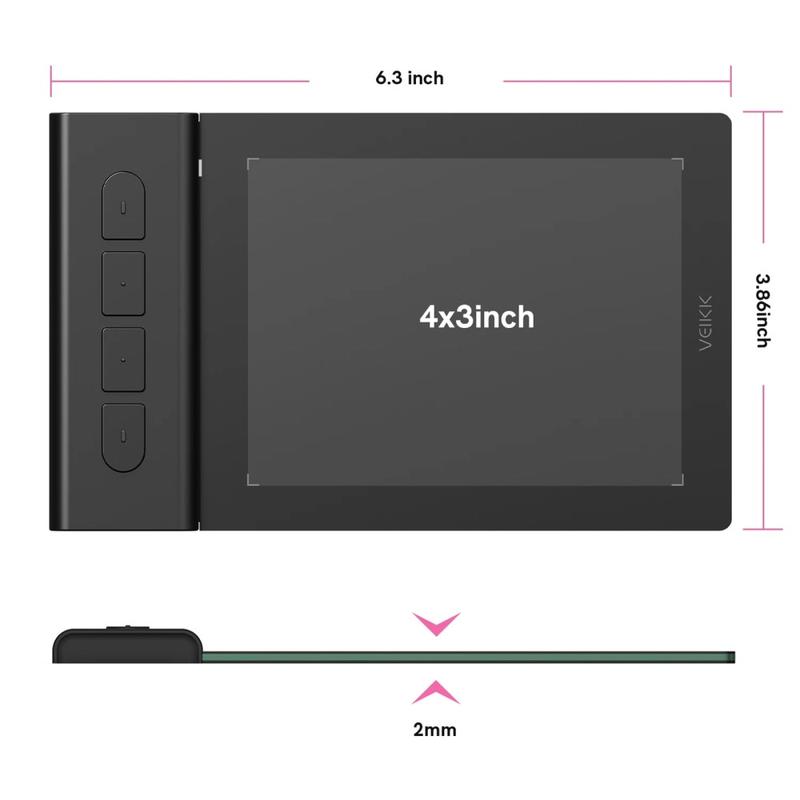 Das ultradünne und leichte VEIKK Creator Pop VK430 Stifttablett ist nur 2 mm dick und wiegt nur 84 Gramm. Die aktive Fläche von 4 x 3 Zoll nimmt Ihren Arbeitsbereich nicht ein, so dass es leicht in eine Laptoptasche oder einen Rucksack passt und bequem transportiert werden kann.