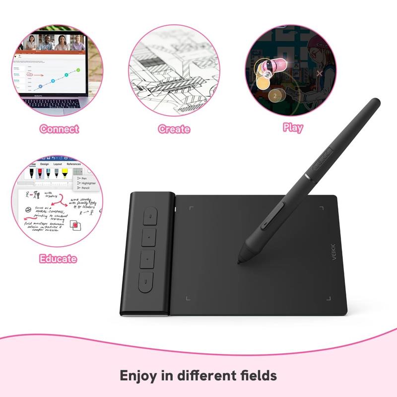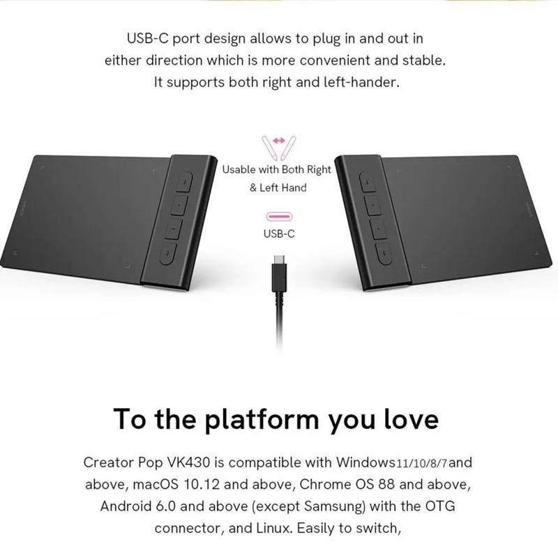 Wechseln Sie nahtlos zwischen verschiedenen Programmen, denn der Creator Pop VK430 ist kompatibel mit Windows 11/10/8/7, Mac OS X 10.12 oder höher, Chrome OS 88 und höher, Android 6.0 und höher mit OTG-Anschluss (außer Samsung) und Linux. Es dient als ideales Werkzeug für Online-Unterricht, elektronisches Lernen, Fernarbeit oder das Unterschreiben von Dokumenten und bietet Kompatibilität mit Microsoft Office-Programmen wie Word, PowerPoint, OneNote und Zoom. Laden Sie Ihren Produkttreiber von der VEIKK-Website herunter, um ein besseres Erlebnis zu haben