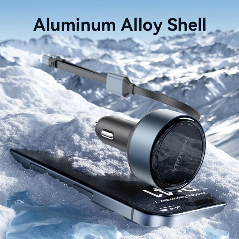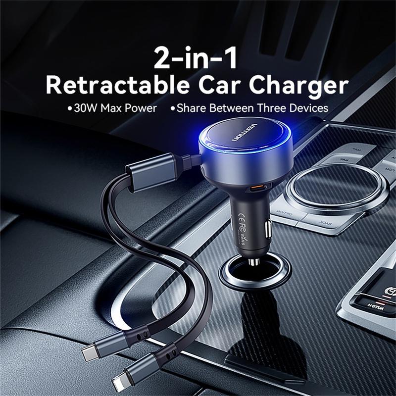 • Vention FFOB0 PD 30W Schnelllade-Autoladegerät mit integriertem USB-C- und Lightning-Kabel