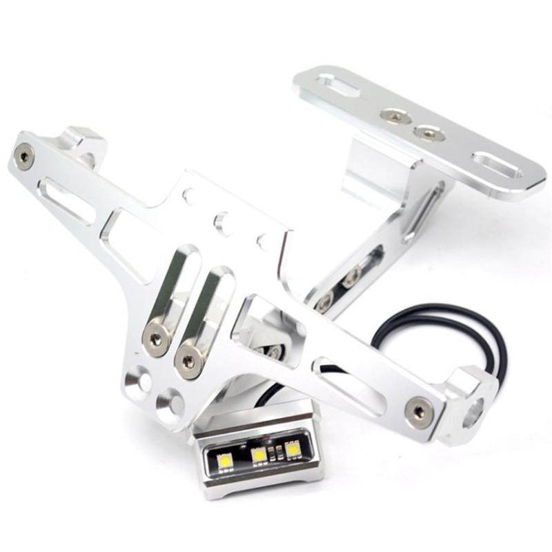 Verstellbare CNC-Aluminium-Legierung Motorrad-Kennzeichenhalterung Fahrrad Licht Teleskophalterung mit LED-Licht - Silber