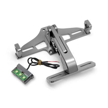 • Verstellbare CNC-Aluminium-Legierung Motorrad-Kennzeichenhalterung Fahrrad Licht Teleskophalterung mit LED-Licht - Titanium Grey