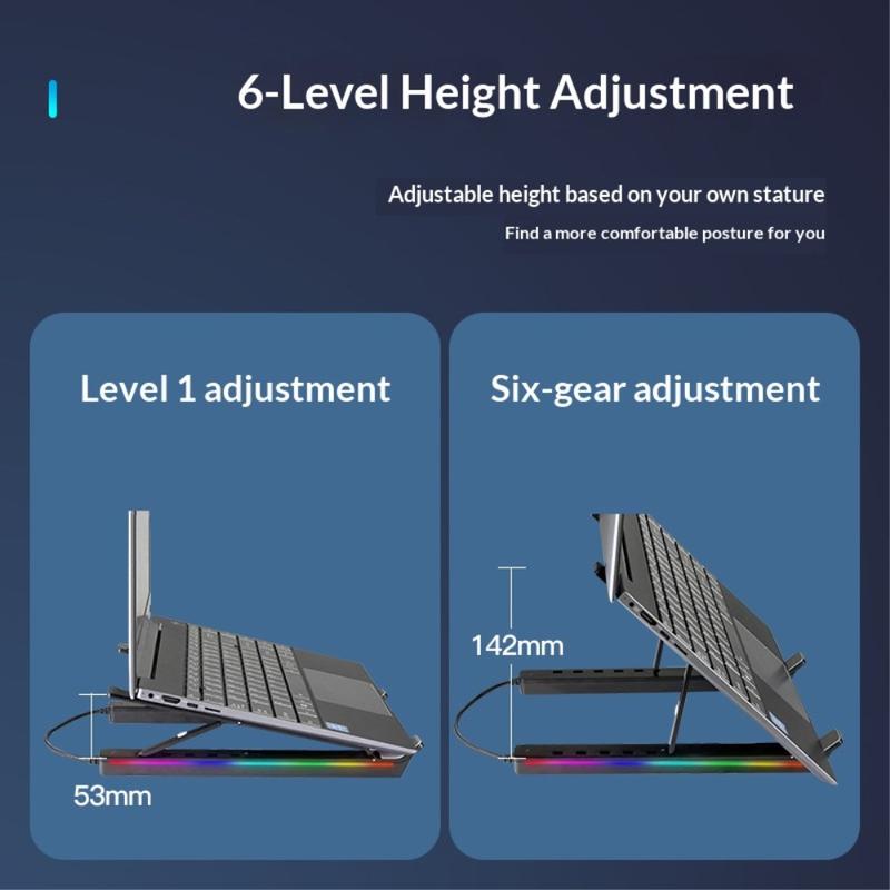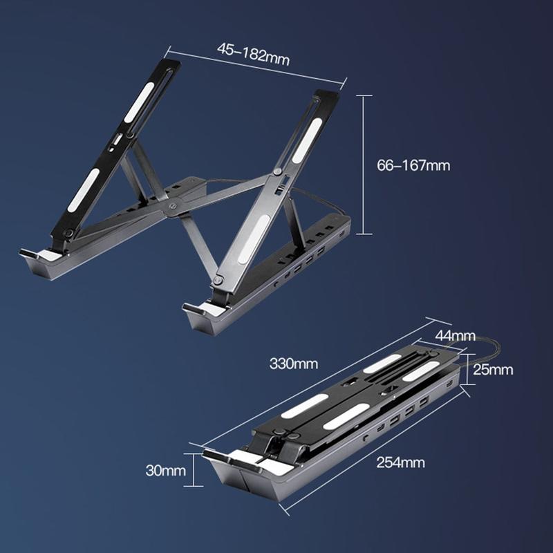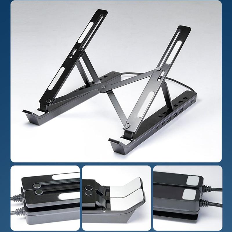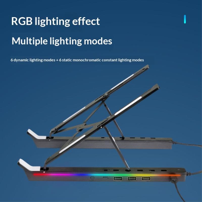 Verstellbarer Laptop-Ständer aus Aluminium mit RGB-Hintergrundbeleuchtung und USB-Hub