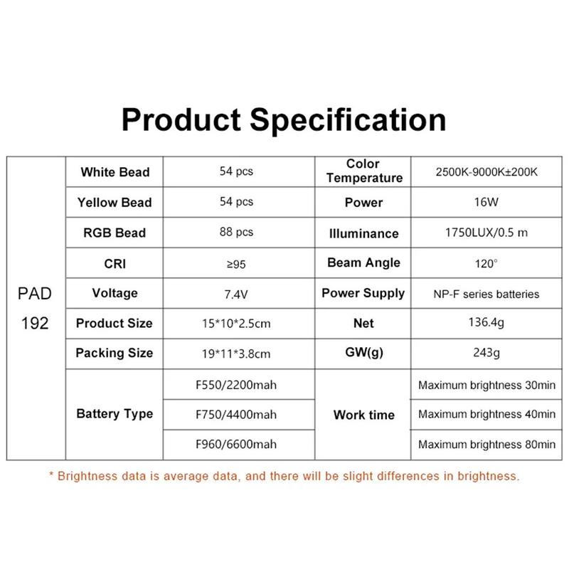 VLOGLITE PAD192RGB LED Kamera Fill Light RGB Full Color Portable Fotografie Beleuchtung für DSLR-Kamera Gopro