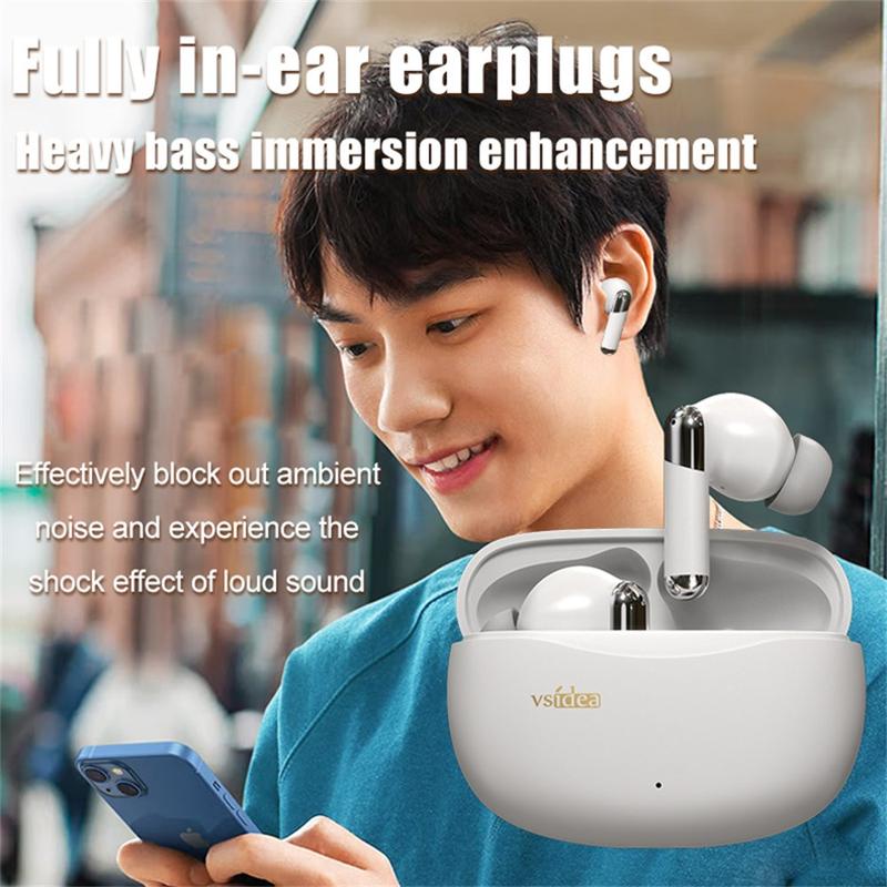 Erleben Sie kristallklare Anrufe und beeindruckenden Klang mit den VSIDEA A91 ENC Noise Cancellation Wireless Earphones. Diese Bluetooth-kompatiblen Kopfhörer mit zwei Mikrofonen und ergonomischen In-Ear-Aufsätzen sind auf Komfort ausgelegt und liefern einen satten High-Fidelity-Sound, den Sie den ganzen Tag tragen können.