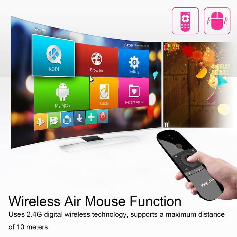Steuern Sie Ihre Smart-Geräte ganz einfach mit der kabellosen Fernbedienung W1 Air Mouse. Dieses praktische 2-in-1-Gerät vereint Air-Mouse-Navigation und eine Mini-Tastatur in einem kompakten Design und ist damit eine praktische Wahl für Smart-TVs, Android-TV-Boxen, PCs, Projektoren und Medienanlagen.