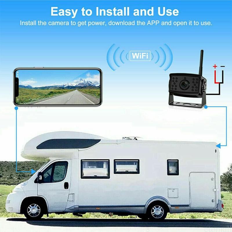 Verbessern Sie die Sicherheit von Transportern, Lastwagen oder Wohnmobilen mit einer kabellosen HD-Kamera, die eine kristallklare 170°-Ansicht auf jedes Smartphone überträgt - ohne Kabel, ohne tote Winkel.
