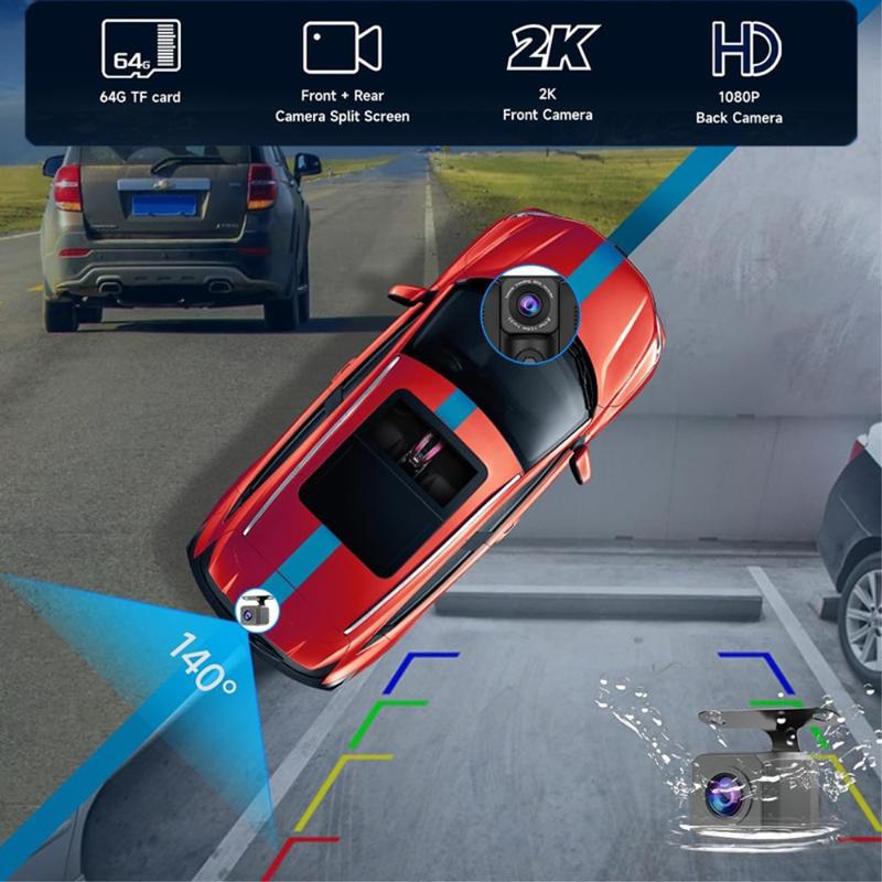 - Dual-Recording Dash Cam: Die vordere Dash Cam erfasst die Straße im Detail, während die hintere AHD-Kamera gleichzeitig hinter Ihrem Fahrzeug für eine umfassende Abdeckung aufzeichnet.
