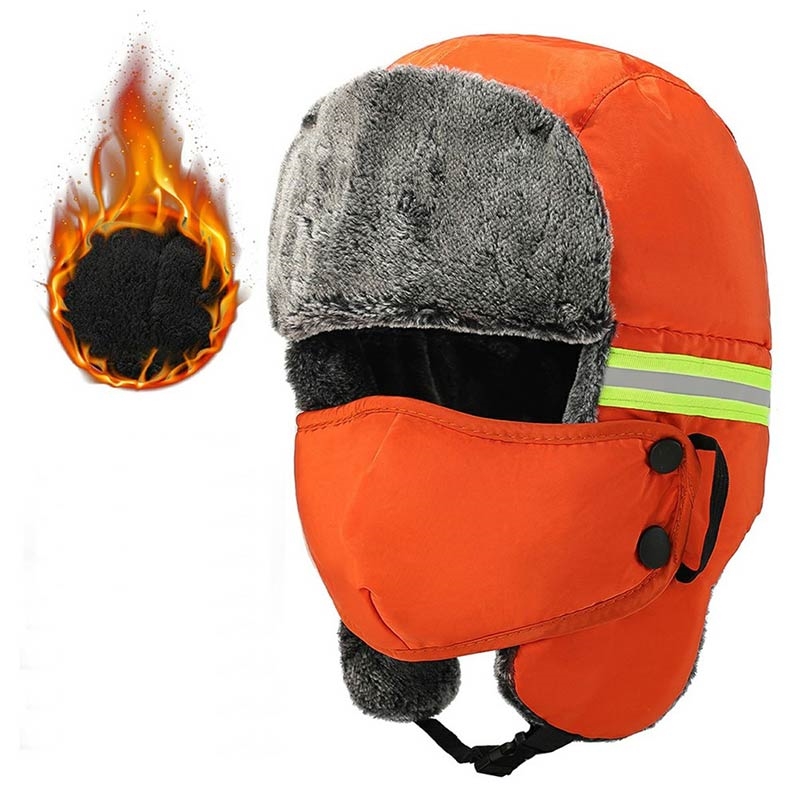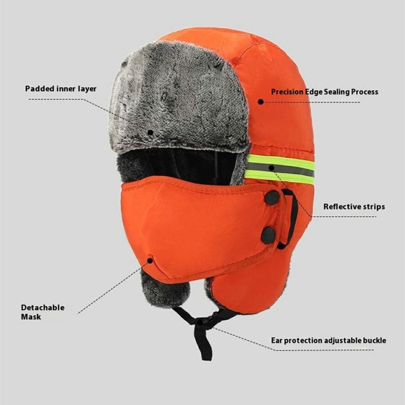 Warme Wintermütze mit Reflektorstreifen und Gesichtsmaske