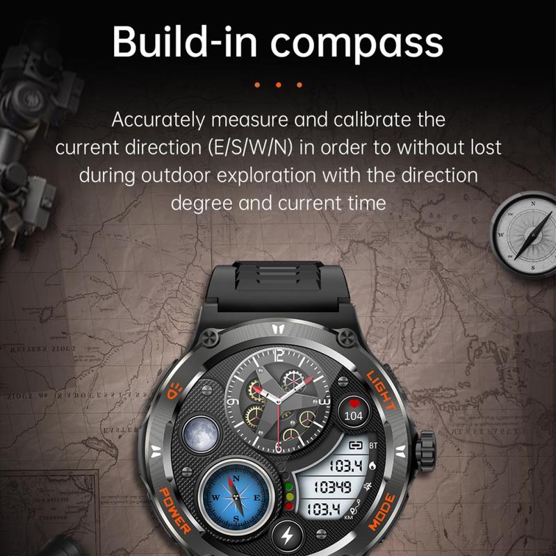 Wasserdichte Smartwatch im Outdoor-Stil KT76 mit Kompass und Taschenlampe - 1.53"
