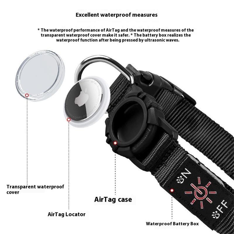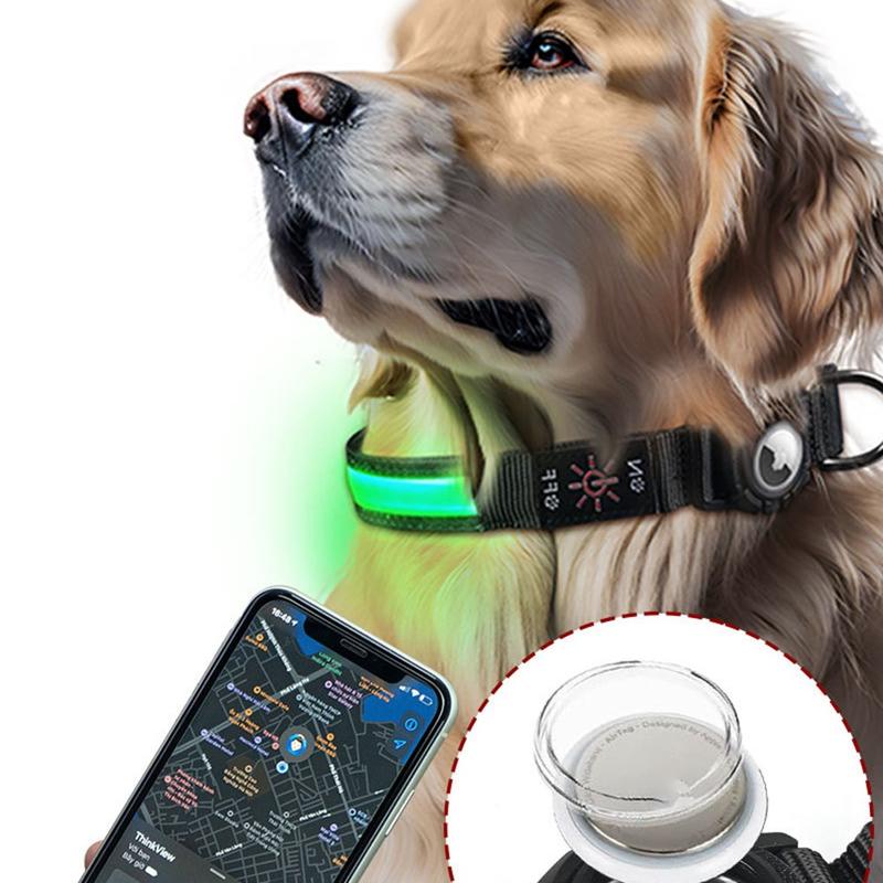 LED-Hundehalsband mit Tasche für Apple AirTag 1/2 - Wasserdichtes Anti-Verlust-Halsband mit wiederaufladbarem Licht