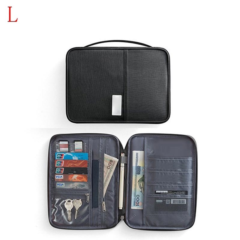 Mit dieser großen Reisetasche sind alle Dokumente auf Geschäftsreisen oder im Familienurlaub sicher und organisiert. Die Tasche aus leichtem 300D kationischem Polyester ist spritzwassergeschützt und wiegt in einer Umhängetasche fast nichts. Ein durchgehender Reißverschluss lässt sich öffnen und gibt den Blick auf spezielle Fächer für vier Pässe, Bordkarten, Bankkarten und Bargeld frei, sodass Check-in und Sicherheitskontrollen schneller und stressfreier vonstatten gehen.