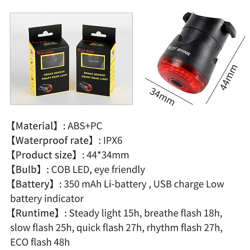 WEST BIKING Smart Sensor Fahrrad Bremslicht 6 Modi Wasserdicht USB Aufladen Fahrrad Sattelstütze LED Rücklicht