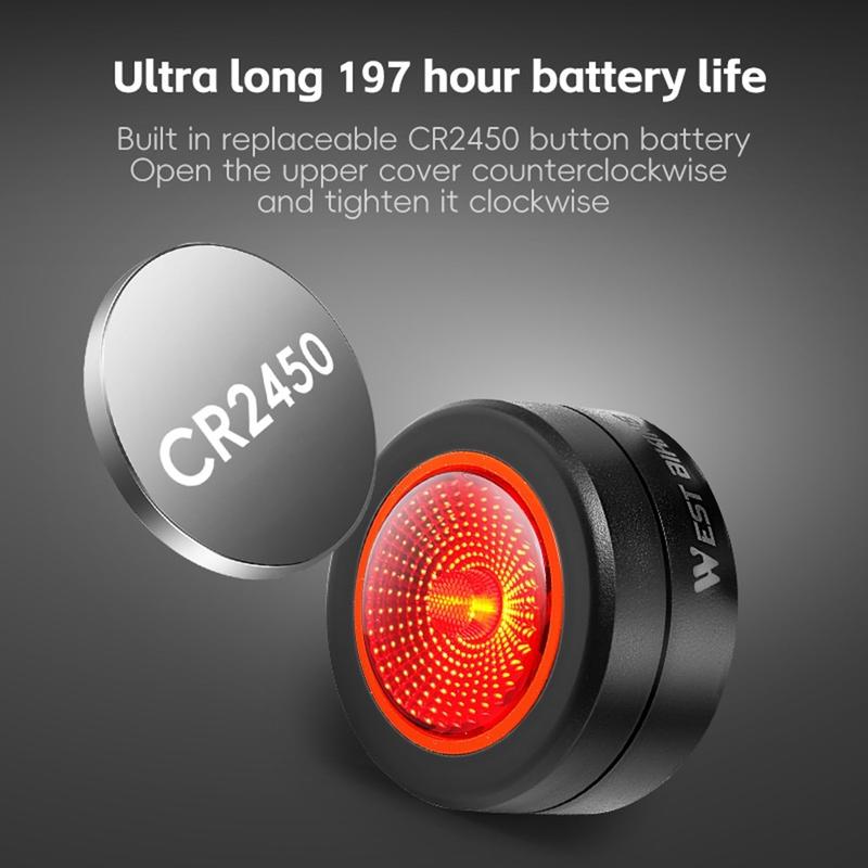 Erhöhen Sie Ihre Sichtbarkeit und fahren Sie sicher mit dem intelligenten Fahrradrücklicht von WEST BIKING mit magnetischer Bremserkennung. Dieses kompakte Rücklicht wurde für die Montage an der Sattelhalterung entwickelt und verfügt über eine intelligente Bewegungserkennung und automatische Bremserkennung, um den Verkehr hinter Ihnen zu warnen. Es wird mit einer austauschbaren CR2450-Batterie betrieben und bietet eine Betriebsdauer von bis zu 197 Stunden, was es zu einer zuverlässigen Sicherheitsaufrüstung für den täglichen Weg zur Arbeit und das Radfahren bei Nacht macht.