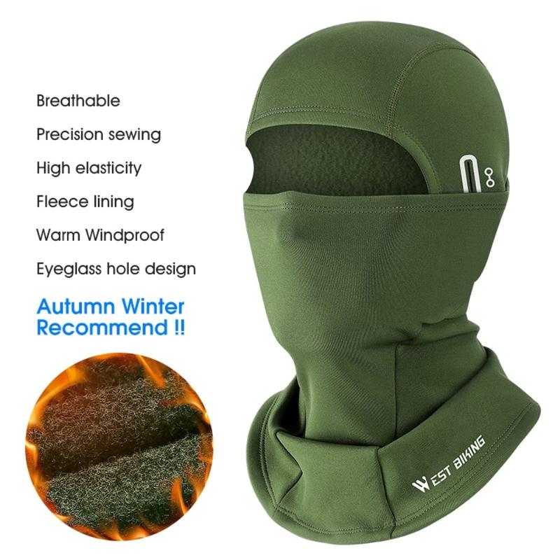 WEST BIKING YP0201343 Winddichter Fahrradschal Thermische Halsmanschette Warmer Atmungsaktiver Halsschutz Kopfbedeckung mit Brillenlöchern - Grün