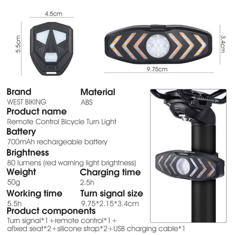 • WEST BIKING YP0701313 Wiederaufladbare Fahrrad LED Rücklicht Fernbedienung Fahrrad Radfahren Blinker Warnung hinten Lampe mit Horn Reminder Ton