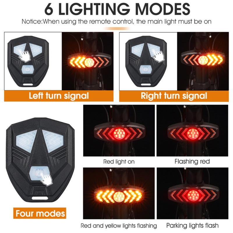 6 Modi: konstantes rotes Licht, rotes Licht blinkt, alle Lichter blinken, linker Blinker, rechter Blinker, Standlicht blinken (blinken einmal alle 6 Sekunden)