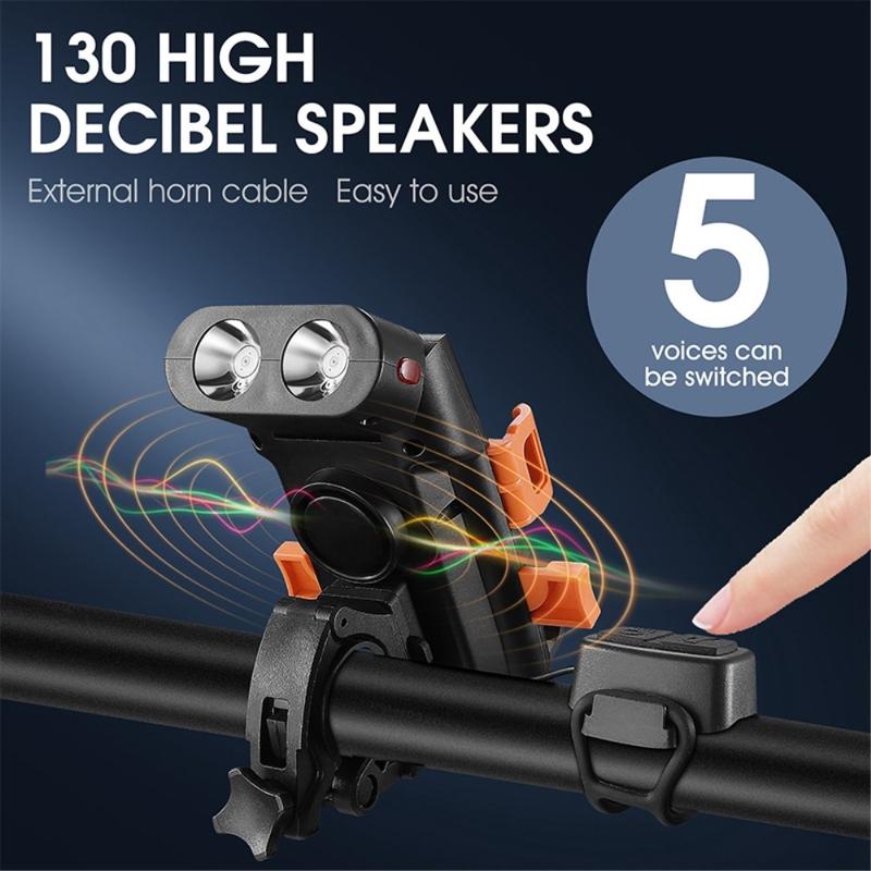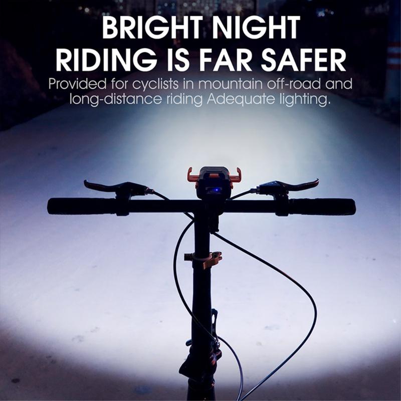 5-in-1-Funktion: Powerbank, Fahrradscheinwerfer, Handyhalter, Hupe, Warnlicht