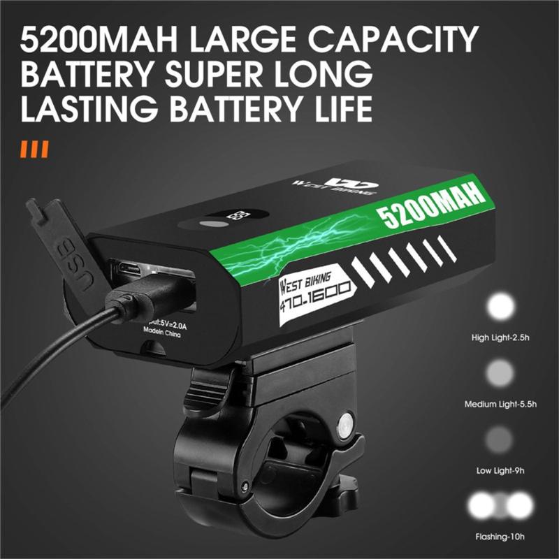 WEST BIKING YP0701329 1600LM Bright LED Bike Front Light Fahrrad Nacht Radfahren Sicherheit Lampe Taschenlampe